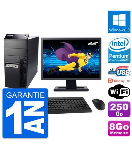 PC Tour Lenovo M91p Ecran 22" Intel G630 RAM 8Go Disque 250Go Windows 10 Wifi