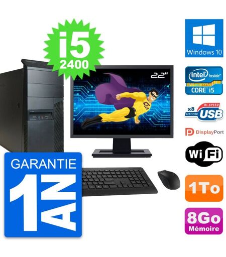 PC Tour Lenovo M91p Ecran 22" Core i5-2400 RAM 8Go Disque 1To Windows 10 Wifi