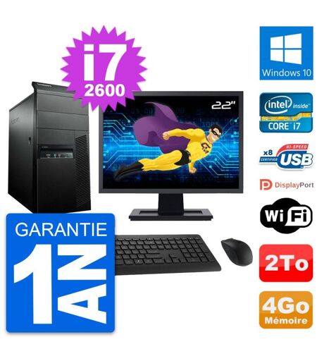 PC Tour Lenovo M91p Ecran 22" Intel i7-2600 RAM 4Go Disque 2To Windows 10 Wifi