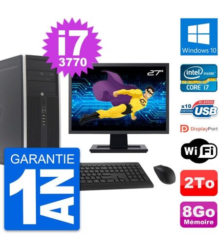 PC Tour HP Elite 8300 Ecran 27" Intel i7-3770 RAM 8Go Disque 2To Windows 10 Wifi