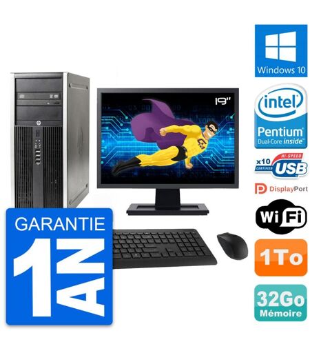PC Tour HP Elite 8300 Ecran 19" Intel G630 RAM 32Go Disque 1To Windows 10 Wifi