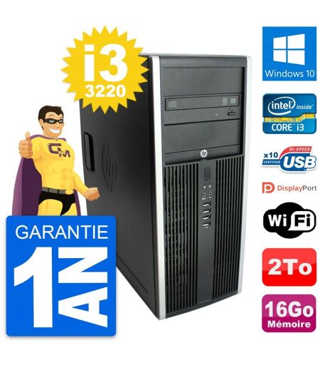 PC Tour HP Elite 8300 Intel Core i3-3220 RAM 16Go Disque Dur 2To Windows 10 Wifi