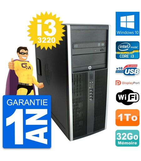PC Tour HP Elite 8300 Intel Core i3-3220 RAM 32Go Disque Dur 1To Windows 10 Wifi