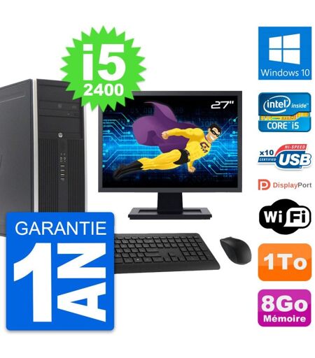 PC Tour HP Elite 8300 Ecran 27" Intel i5-2400 RAM 8Go Disque 1To Windows 10 Wifi