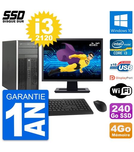 PC Tour HP 6300 CMT Ecran 22" Intel i3-2120 RAM 4Go SSD 240Go Windows 10 Wifi