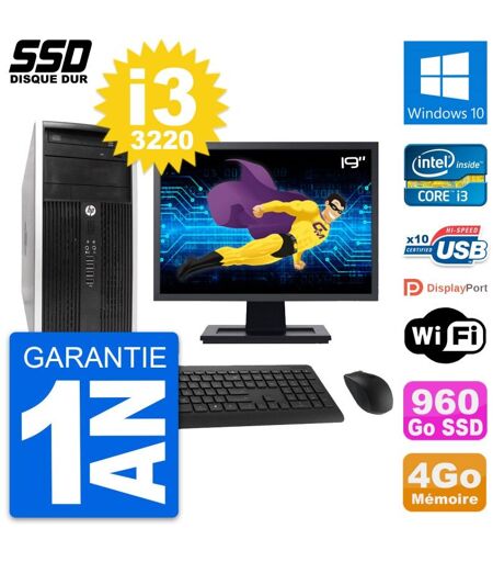 PC Tour HP 6300 CMT Ecran 19" Intel i3-3220 RAM 4Go SSD 960Go Windows 10 Wifi