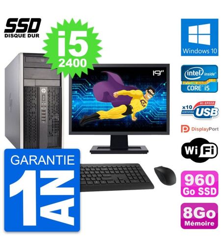 PC Tour HP 6300 CMT Ecran 19" Intel i5-2400 RAM 8Go SSD 960Go Windows 10 Wifi