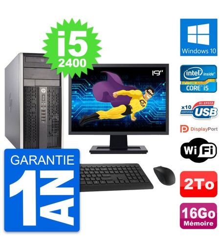 PC Tour HP 6300 CMT Ecran 19" i5-2400 RAM 16Go Disque Dur 2To Windows 10 Wifi