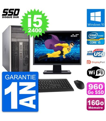 PC Tour HP 6300 CMT Ecran 22" Intel i5-2400 RAM 16Go SSD 960Go Windows 10 Wifi
