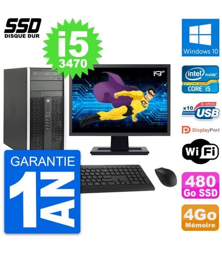 PC Tour HP 6300 CMT Ecran 19" Intel i5-3470 RAM 4Go SSD 480Go Windows 10 Wifi