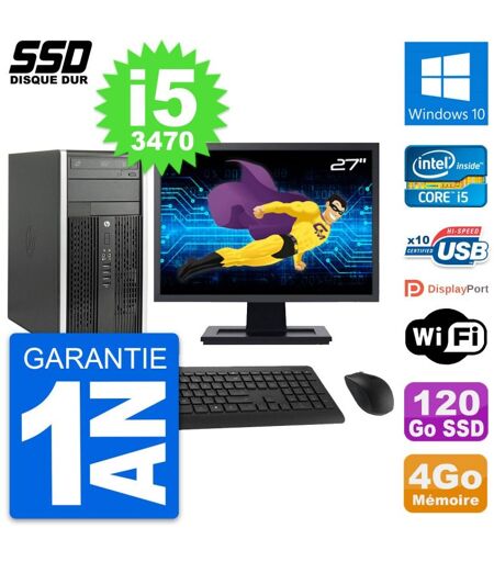 PC Tour HP 6300 CMT Ecran 27" Intel i5-3470 RAM 4Go SSD 120Go Windows 10 Wifi
