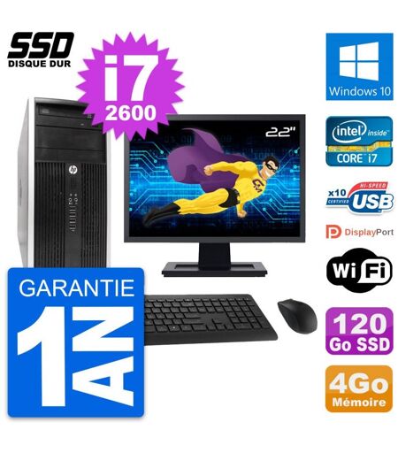 PC Tour HP 6300 CMT Ecran 22" Intel i7-2600 RAM 4Go SSD 120Go Windows 10 Wifi