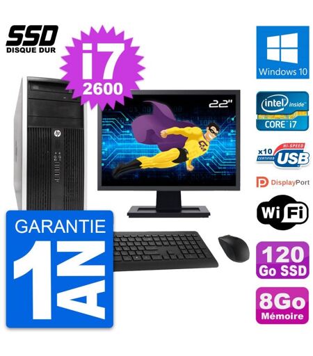 PC Tour HP 6300 CMT Ecran 22" Intel i7-2600 RAM 8Go SSD 120Go Windows 10 Wifi