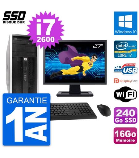 PC Tour HP 6300 CMT Ecran 27" Intel i7-2600 RAM 16Go SSD 240Go Windows 10 Wifi