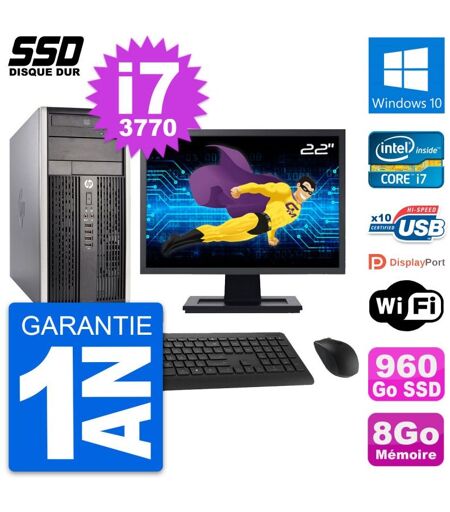 PC Tour HP 6300 CMT Ecran 22" Intel i7-3770 RAM 8Go SSD 960Go Windows 10 Wifi