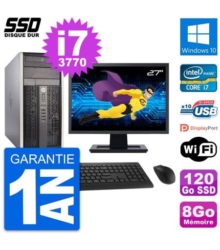 PC Tour HP 6300 CMT Ecran 27" Intel i7-3770 RAM 8Go SSD 120Go Windows 10 Wifi