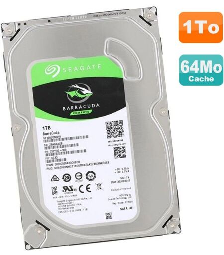 Disque Dur 1To 3.5" SATA Seagate Barracuda Compute ST1000DM010 2EP102-300 64Mo