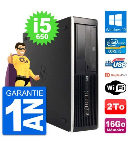 PC HP 8100 Elite SFF Intel Core i5-650 RAM 16Go Disque Dur 2To Windows 10 Wifi