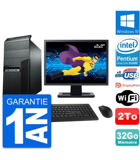 PC Tour Lenovo M92p Ecran 22" Pentium G2020 RAM 32Go Disque 2To Windows 10 Wifi