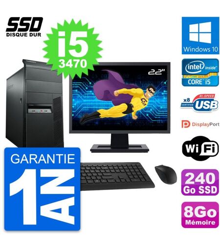 PC Tour Lenovo M92p Ecran 22" Intel i5-3470 RAM 8Go SSD 240Go Windows 10 Wifi