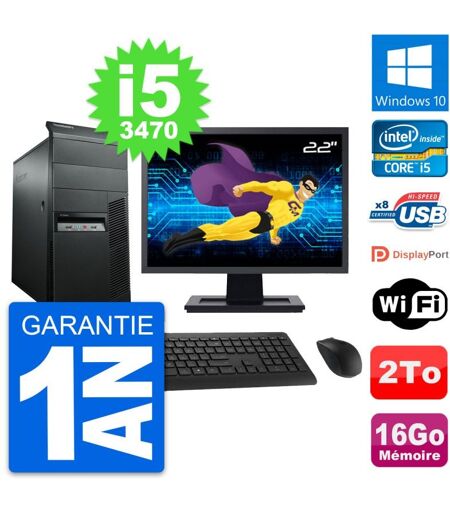 PC Tour Lenovo M92p Ecran 22" Intel i5-3470 RAM 16Go Disque 2To Windows 10 Wifi