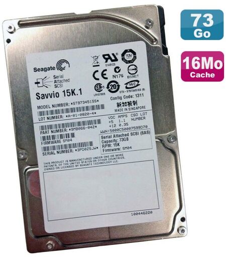 Disque Dur Interne pour Serveur / Server Internal Hard Drive Disk. Marque : Seagate / Dell Modèle : Savvio 15K.1 / ST973451SS Référence : 9MB066-041 / 0NP657 / NP657 / SM03 Format : 2.5" Capacité : 73 Go Type d'interface : Serial Attached SCSI (SAS 3Gb/s) Vitesse de rotation : 15000 tours/min Taille de la Mémoire Tampon : 16 Mo Produit de seconde main testé. ...