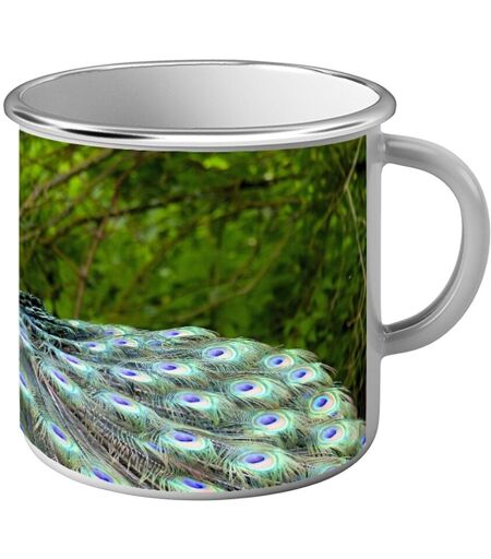 Mug Métal Tasse Photo De Paon Plumage Bleu Vert Fleurs Mauves Nature Champêtre Animaux