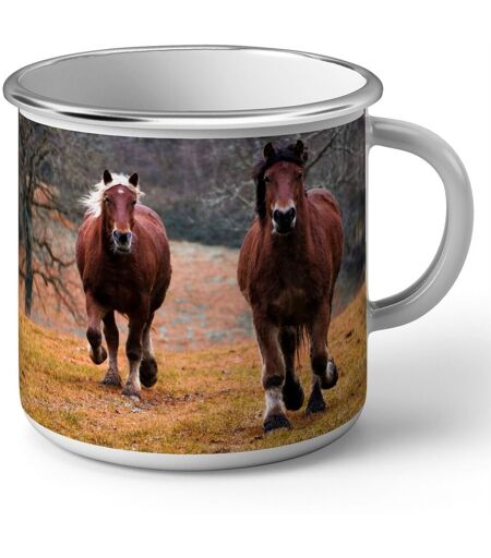 Mug En Métal Emaillé Poneys Au Galop Chevaux Nature Animaux Domestiques