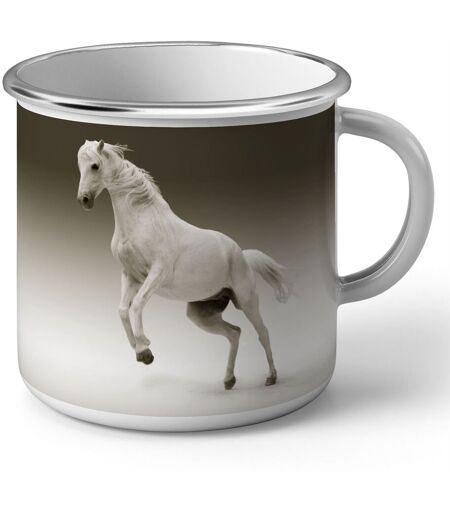 Mug En Métal Emaillé Beau Cheval Blanc Au Galop Animal Domestique