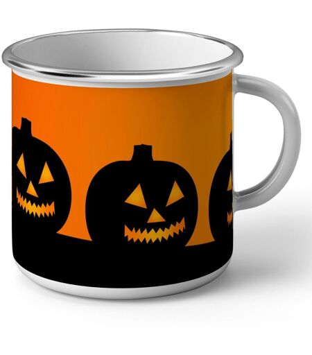 Mug En Métal Emaillé Halloween Citrouilles Effrayantes Peur Orange Trick Or Treats