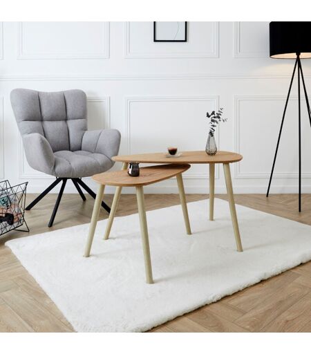 Les tables gigognes ont le vent en poupe ! Découvrez ce modèle en bois agrémenté d'un plateau en forme de galet. Il est réalisé en bois, vous serez séduit par sa qualité et pourrez apporter un style moderne à votre intérieur tout en adaptant ce duo à vos besoins. Convivialité et charme seront au rendez-vous dans votre salon avec ce duo de tables. ...