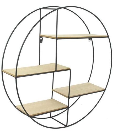 The Home Deco Factory - Etagère industrielle ronde en bois et métal 50 cm Noir