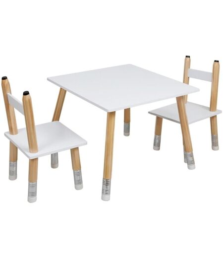 The Home Deco Kids - Ensemble table et 2 chaises pour enfants en bois Crayon