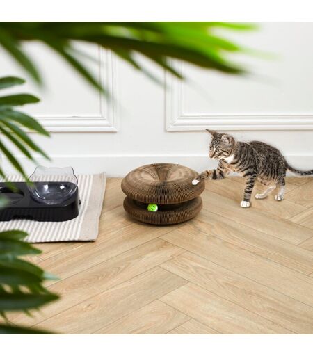Ce griffoir à chat est un accessoire 2en1 indispensable pour votre chat ! Ingénieux, placez la balle au centre du griffoir, assemblez les deux surfaces magnétiques puis dépliez-le. Ultra résistant, votre chat pourra se faire les griffes et jouer avec. Pratique, la forme peut être ajustée à volonté sans casser le griffoir, succès assuré ! ...