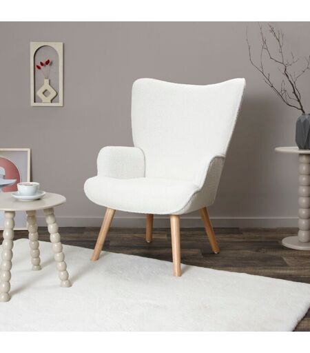 The Home Deco Factory - Fauteuil en tissu bouclette et bois Rhea
