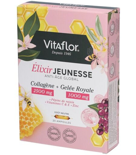 DIETETIQUE ET SANTE Vitaflor Elixir Jeunesse Anti-âge Global Goût Neutre Ampoule(S) 20 pc(s)