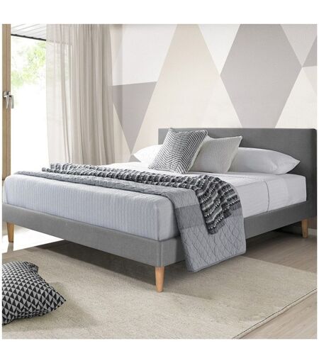 Sofareva - Lit Elisa en tissu 160x200 cm Gris clair Sommier inclus - gris clair