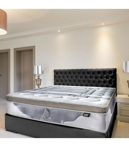 Ce matelas d’exception propose une combinaison de technologies pour un sommeil relaxant et récupérateur . En édition exclusive, il offre un confort optimal grâce à ses 7 zones de confort , sa mousse mémoire de forme , ses ressorts ensachés et son latex apportant douceur et aération. Avec son design élégant, ce matelas est matelassé avec broderies . Caractéristiques techniques : Son coutil (enveloppe du matelas), propose un insert de fibres polyester(1000D), est de qualité haut de gamme texturé en stretch (550 gr/m2). D'une épaisseur de 32 cm , son soutien est mi-ferme et son accueil tonique. Le confort de ce matelas est optimal grâce à sa mousse à mémoire de forme (15 mm de mousse viscoélastique de 60 kg/m3) pour une relaxation maximale au niveau des pressions qu’exercent votre corps. La technologie AIR SOFT® est composé de particules de gel donnant un effet de fraicheur, moelleux et apaisant. Également, le matelas est composé de 3 cm de mousse haute résilience (30 kg/m3) adaptée à ...