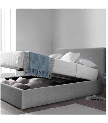 SOFAREVA Lit coffre Carlota En tissu capitonne 140x190 cm Matelas en option Gris clair Sommier inclus - gris clair