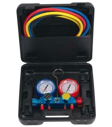 Mallette contenant un kit avec by-pass diamètre 80mm à quatre voies avec tuyaux flexibles équipés de vannes. Caractéristiques Réfrigérants : R410-R32-R134-R407 Raccordement : Bleu et rouge 1/4' - 5/16' Jaune et noir 1/4' - 1/4' Flexibles : 4 à 1500mm Vannes : oui à l'extrémité des flexibles Diamètre manomètres : 80mm Amortissement : oui Pulse Free (idem glycérine) ...
