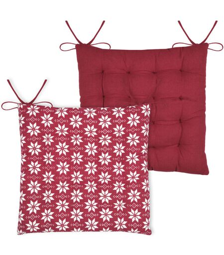 LOVELY CASA Galette de chaise esprit chalet traditionnel en coton Rouge 38x38 cm