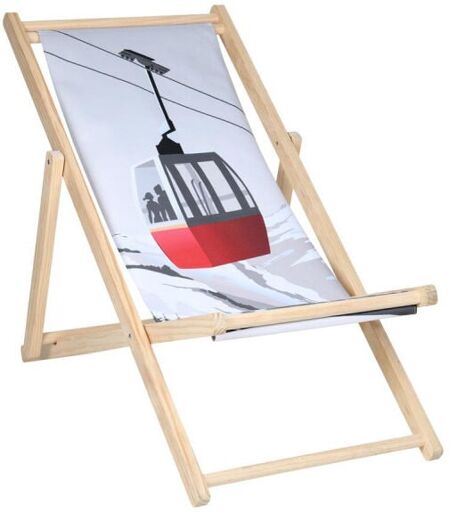 Vendu à l'unité Dimensions : 126 x 59 x 5 cm Structure : bois Toile : polyester résistante Couleur : blanc avec motif cabine téléphérique Repliable pour un rangement facile Utilisation : extérieur / intérieur Matière: 40% polyester 60% bois ...