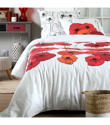 Parure de lit coquelicots 220 x 240 cm Housse de couette Dim : 220 x 240 cm 2 Taies d'oreiller Dim 63 x 63 cm 100 % coton ...