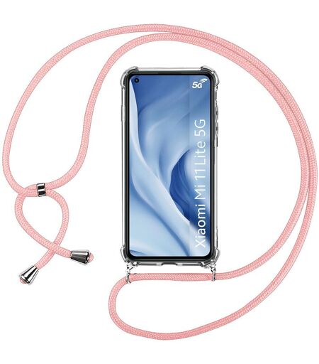 E.F.Connection Coque Pour Xiaomi Mi 11 Lite (6.55'') Coin Renforcé Anti-Rayure Transparente Souple Tpu Inclu Chaîne Rose