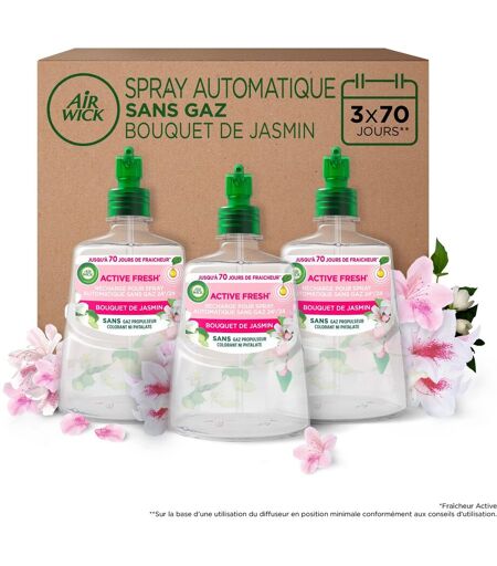 Air Wick Desodorisant Maison Spray Automatique Sans Gaz Active Fresh - 3 Recharges Parfum Bouquet de Jasmin