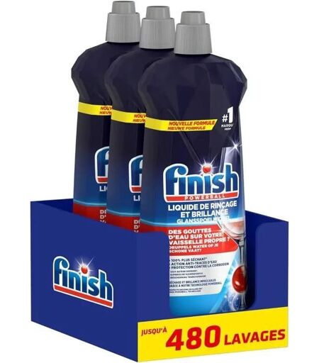 Finish Liquide de Rinçage Brillance et Séchage- Produit Lave-Vaisselle - Jusqu'à 480 lavages - 2400ml en Lot de 3 ...