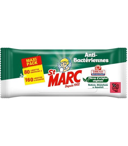 ST MARC Lingettes Nettoyantes et Désinfectantes Antibactériennes - 80 lingettes