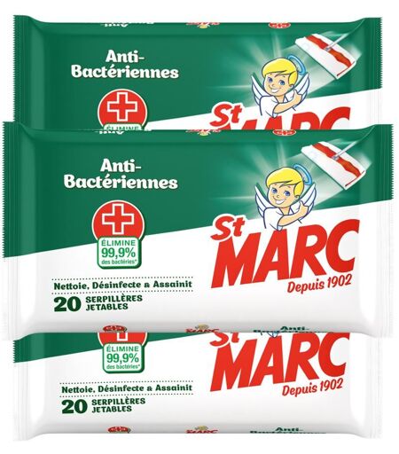 St Marc Serpillières Jetables Désinfectantes et Antibactériennes, 20 Serpillières Jetables, Lot de 3
