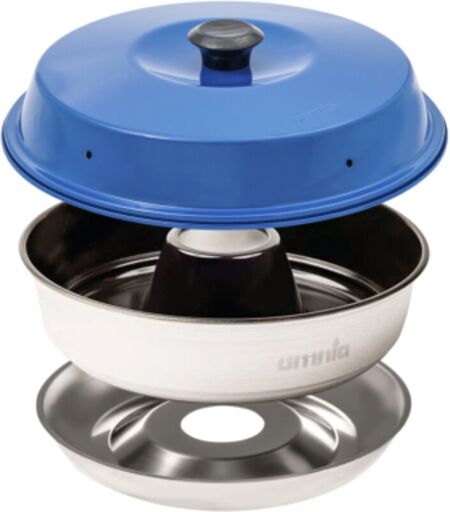 Un four portable robuste, ingénieux et compact qui vous permet de déguster de bons petits plats variés. Le four Omnia est devenue un incontournable en camping ou dans les véhicules de loisirs (camping-car, caravane, fourgon aménagé, van, bateau...). Il est constitué de 3 éléments : un châssis en inox SS430 robuste avec un trou central, un moule de 2 litres en céramique de 25 cm de diamètre, également troué en son centre, et un couvercle en aluminium. Il vous suffit de le poser sur une gazinière, sur un réchaud à gaz ou autre (sauf des plaques vitrocéramiques ou à induction) pour pouvoir réaliser pratiquement les mêmes recettes que dans un four traditionnel ! La chaleur se propage de manière uniforme par le trou central, ce qui permet une cuisson douce et homogène. Faite cuire du pain, des croissants, des quiches, des gâteaux, des tartes, des gratins, des viandes, des pizzas, des lasagnes et bien plus encore ! Châssis en acier inoxydable de qualité SS430 Diamètre : 250 mm Hauteur : 70 ...