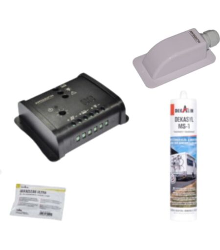 Le kit de pose en blister contient : • Le régulateur solaire P10 • Un passe-toit étanche • Une cartouche Dekasyl MS1 • Une lingette Dekaclean Caractéristiques du régulateur : • Régulateur MPPT économique 10A. Il booste la charge en provenance du panneau solaire • Convient pour les batteries Acides, Gel et AGM. • Un seul panneau par régulateur (170W max) • Aucun paramétrage nécessaire • 1 sortie batterie • Dimensions : 13,5 x 10,6 x 4 cm • Poids : 0,2 kg ...
